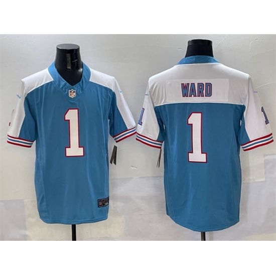 Men's Tennessee Titans #1 Cameron Ward Blue White 2025 Draft F.U.S.E. Vapor Limited Football Stitched Jersey
