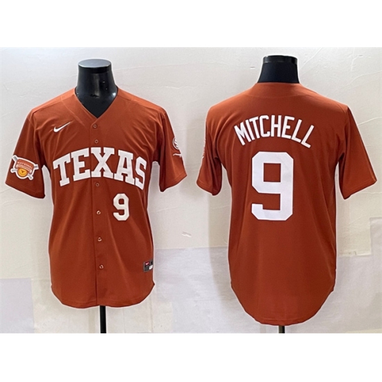 Men's Texas Longhorns #9 Joley Mitchell Orange 2025 World Series & SEC Patch Stitched Jersey