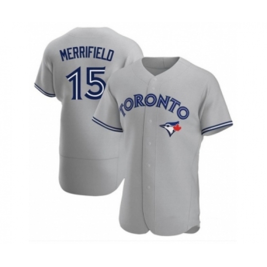 >Mens Toronto Blue Jays #15 Whit Merrifield Nike Gray Road Flex Base Player Jersey