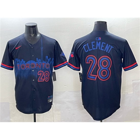Men's Toronto Blue Jays #28 Ernie Clement Navy 2024 City Connect Limited Stitched Baseball Jersey
