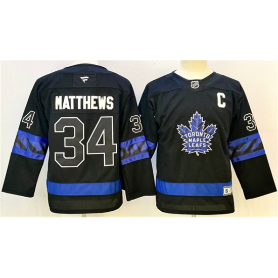 Men's Toronto Maple Leafs #34 Auston Matthews Black 2024-25 Alternate With C Stitched Jersey
