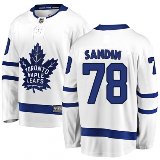 Men's Toronto Maple Leafs #78 Rasmus Sandin Authentic White Away Fanatics Branded Breakaway NHL Jersey