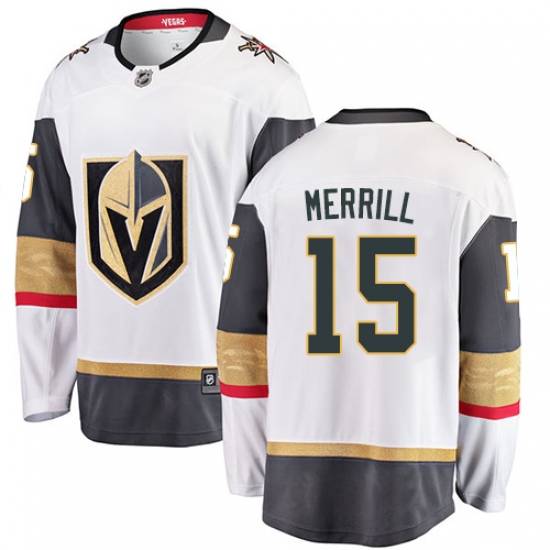 Home>NHL>Vegas Golden Knights>Jon Merrill>Men's Vegas Golden Knights #15 Jon Merrill Authentic White Away Fanatics Branded Breakaway NHL Jersey