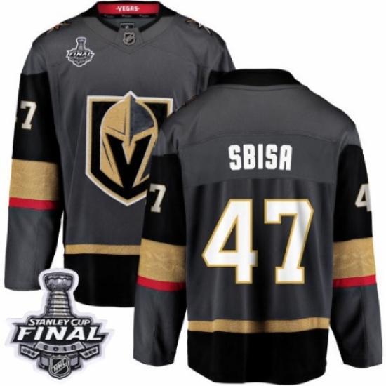 >Men's Vegas Golden Knights #47 Luca Sbisa Authentic Black Home Fanatics Branded Breakaway 2018 Stanley Cup Final NHL Jersey