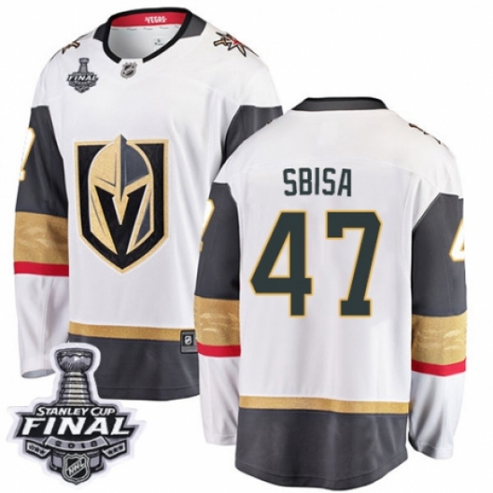 >Men's Vegas Golden Knights #47 Luca Sbisa Authentic White Away Fanatics Branded Breakaway 2018 Stanley Cup Final NHL Jersey