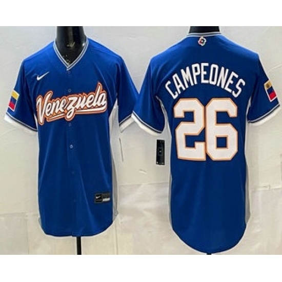 Men's Venezuela #26 Campeones Blue 2026 World Baseball Classic Cool Base Jersey