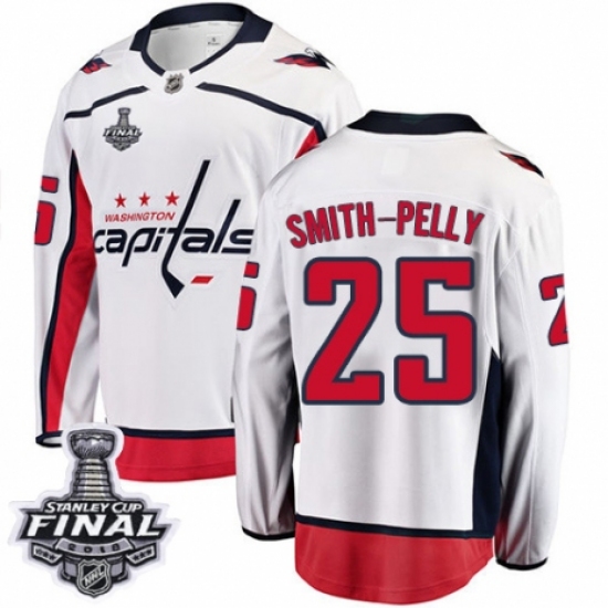 Men's Washington Capitals #25 Devante Smith-Pelly Fanatics Branded White Away Breakaway 2018 Stanley Cup Final NHL Jersey