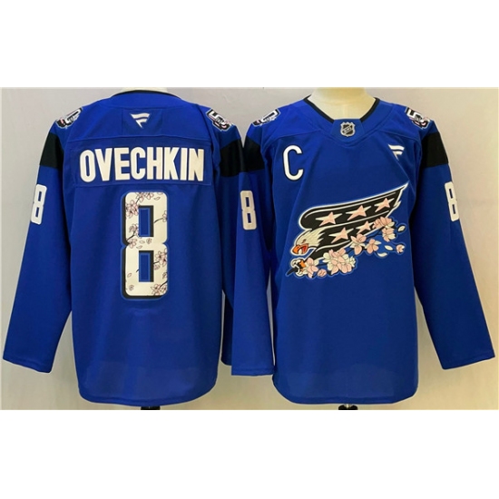 >Men's Washington Capitals #8 Alex Ovechkin Blue Cherry Blossom With C Stitched Hockey Jersey