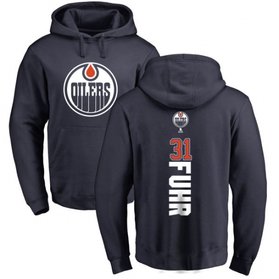 Home>NHL>Edmonton Oilers>Grant Fuhr>NHL Adidas Edmonton Oilers #31 Grant Fuhr Navy Blue Backer Pullover Hoodie