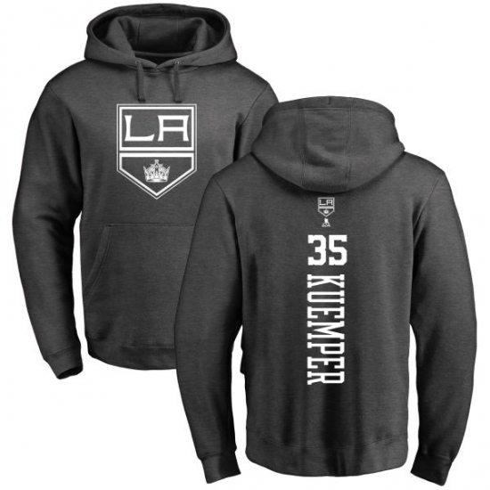 NHL Adidas Los Angeles Kings #35 Darcy Kuemper Charcoal One Color Backer Pullover Hoodie