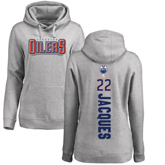 NHL Women's Adidas Edmonton Oilers #22 Jean-Francois Jacques Ash Backer Pullover Hoodie