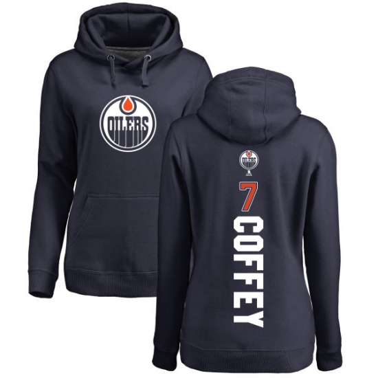 Home>NHL>Edmonton Oilers>Paul Coffey>NHL Women's Adidas Edmonton Oilers #7 Paul Coffey Navy Blue Backer Pullover Hoodie