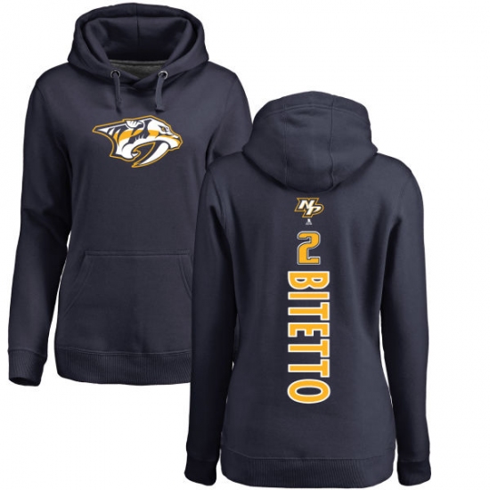 Home>NHL>Nashville Predators>Anthony Bitetto>NHL Women's Adidas Nashville Predators #2 Anthony Bitetto Navy Blue Backer Pullover Hoodie