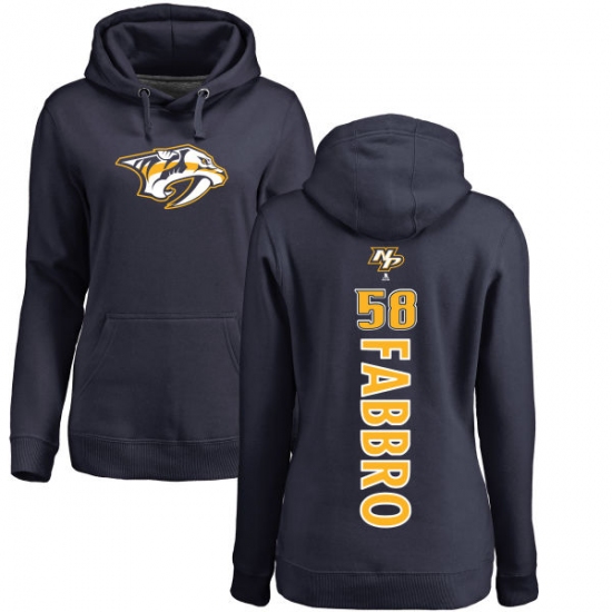 Home>NHL>Nashville Predators>Dante Fabbro>NHL Women's Adidas Nashville Predators #58 Dante Fabbro Navy Blue Backer Pullover Hoodie