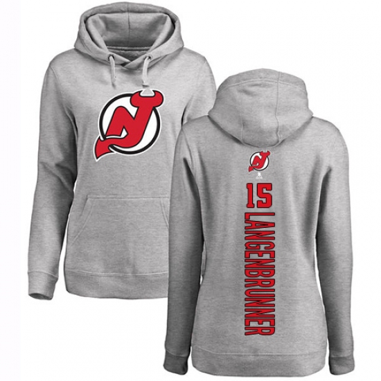 NHL Women's Adidas New Jersey Devils #15 Jamie Langenbrunner Ash Backer Pullover Hoodie