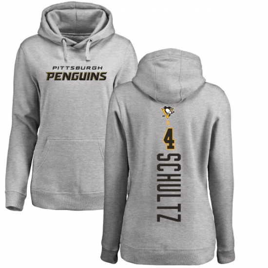 NHL Women's Adidas Pittsburgh Penguins #4 Justin Schultz Ash Backer Pullover Hoodie