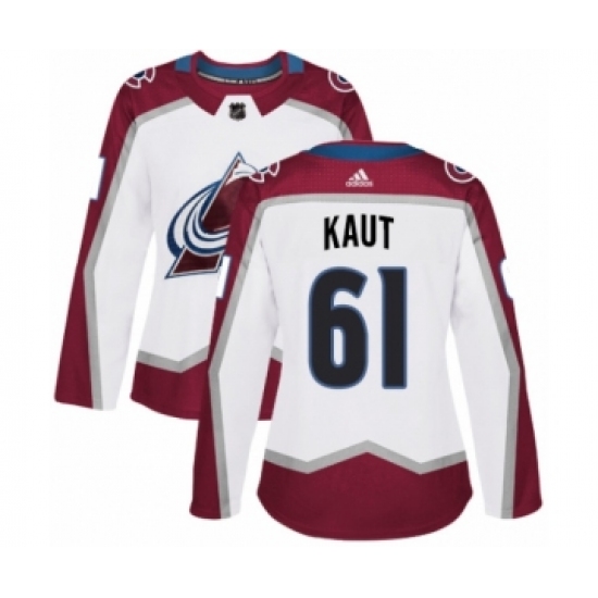 >Women's Adidas Colorado Avalanche #61 Martin Kaut Authentic White Away NHL Jersey