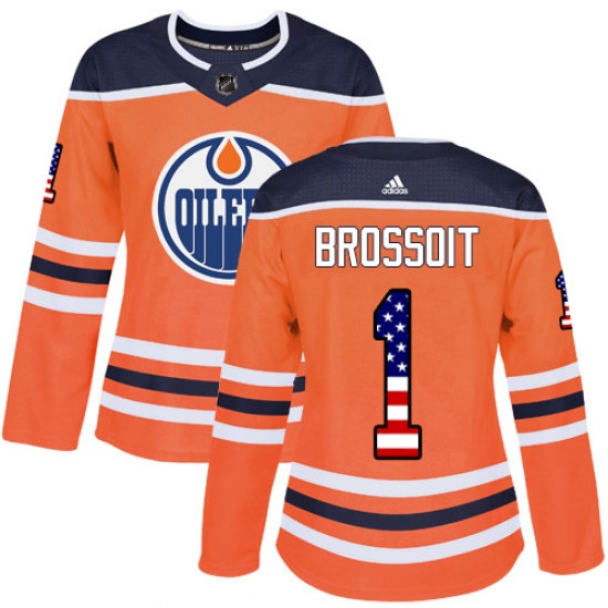 Home>NHL>Edmonton Oilers>Laurent Brossoit>Women's Adidas Edmonton Oilers #1 Laurent Brossoit Authentic Orange USA Flag Fashion NHL Jersey