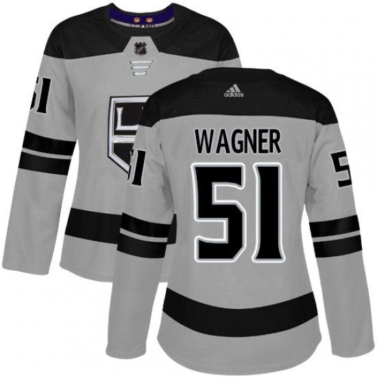 >Women's Adidas Los Angeles Kings #51 Austin Wagner Authentic Gray Alternate NHL Jersey