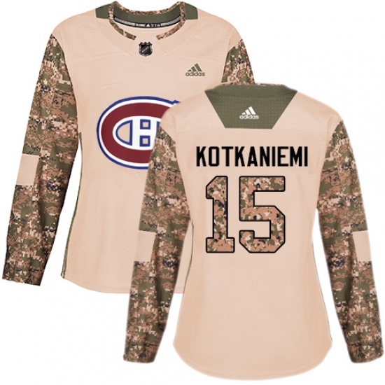 >Women's Adidas Montreal Canadiens #15 Jesperi Kotkaniemi Authentic Camo Veterans Day Practice NHL Jersey