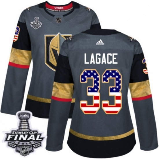 Women's Adidas Vegas Golden Knights #33 Maxime Lagace Authentic Gray USA Flag Fashion 2018 Stanley Cup Final NHL Jersey
