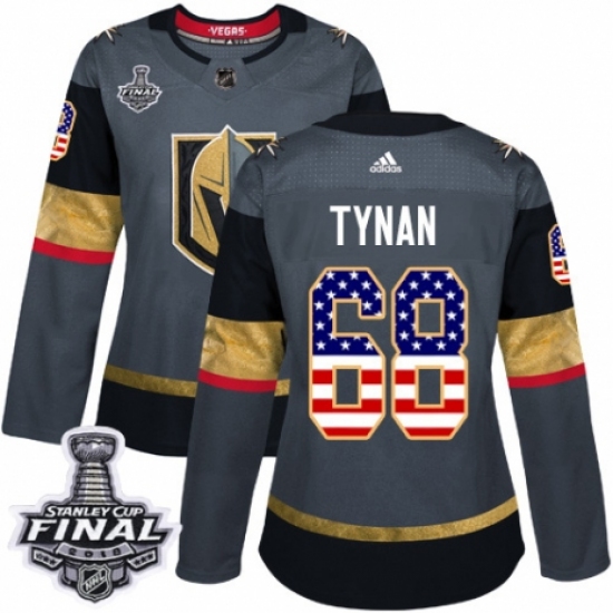 Women's Adidas Vegas Golden Knights #68 T.J. Tynan Authentic Gray USA Flag Fashion 2018 Stanley Cup Final NHL Jersey