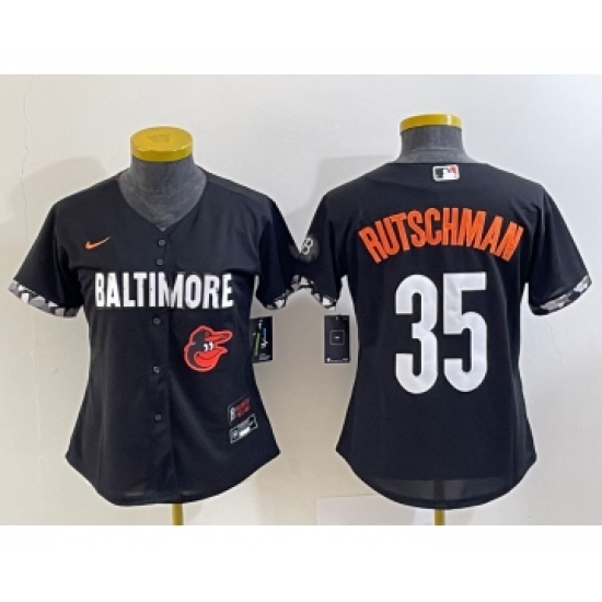 >Women's Baltimore Orioles #35 Adley Rutschman Black 2023 City Connect Cool Base Stitched Jersey 1