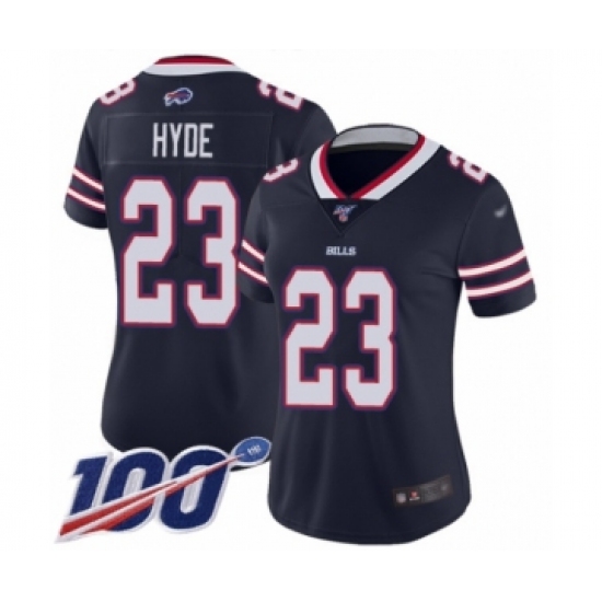 >Women's Buffalo Bills #23 Micah Hyde Limited Navy Blue Inverted Legend 100th Season Football Jersey