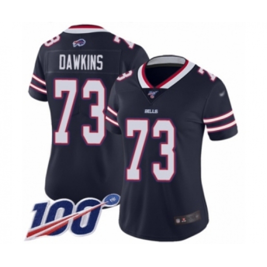 >Women's Buffalo Bills #73 Dion Dawkins Limited Navy Blue Inverted Legend 100th Season Football Jersey