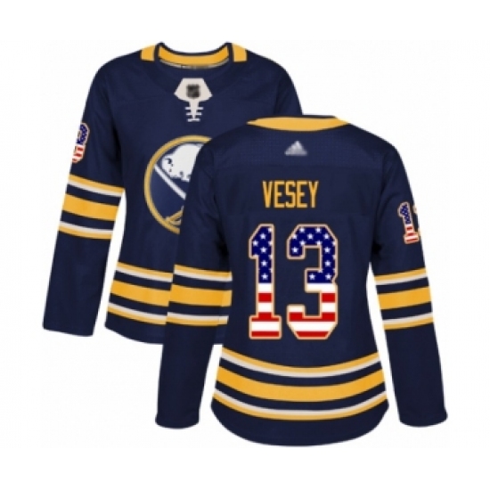 Women's Buffalo Sabres #13 Jimmy Vesey Authentic Navy Blue USA Flag Fashion Hockey Jersey