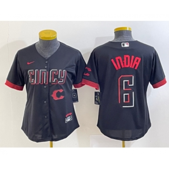 Women's Cincinnati Reds #6 Jonathan India Black 2023 City Connect Cool Base Stitched Jersey