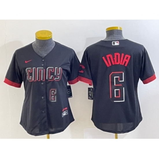 Women's Cincinnati Reds #6 Jonathan India Number Black 2023 City Connect Cool Base Stitched Jersey