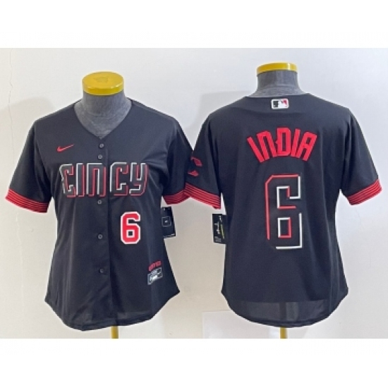 Women's Cincinnati Reds #6 Jonathan India Black 2023 City Connect Cool Base Stitched Jersey 1
