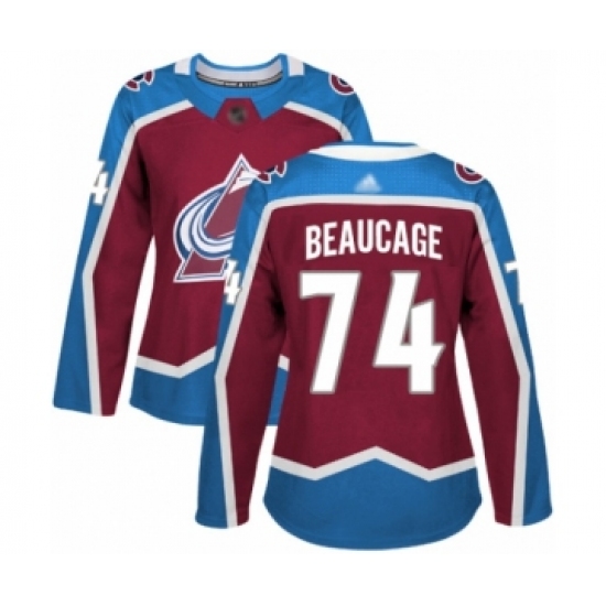 >Women's Colorado Avalanche #74 Alex Beaucage Authentic Burgundy Red Home Hockey Jersey