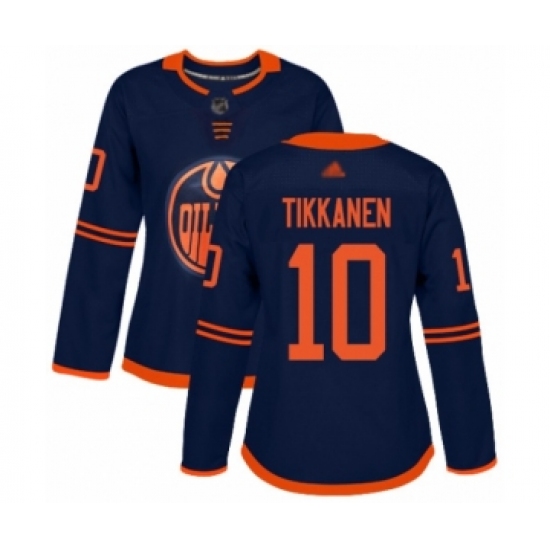 Women's Edmonton Oilers #10 Esa Tikkanen Authentic Navy Blue Alternate Hockey Jersey