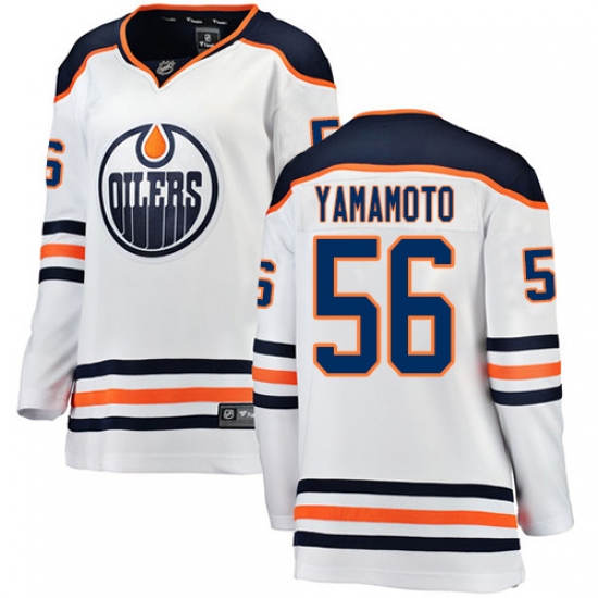 Home>NHL>Edmonton Oilers>Kailer Yamamoto>Women's Edmonton Oilers #56 Kailer Yamamoto Authentic White Away Fanatics Branded Breakaway NHL Jersey