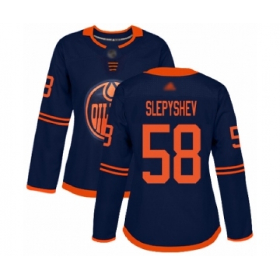 >Women's Edmonton Oilers #58 Anton Slepyshev Authentic Navy Blue Alternate Hockey Jersey