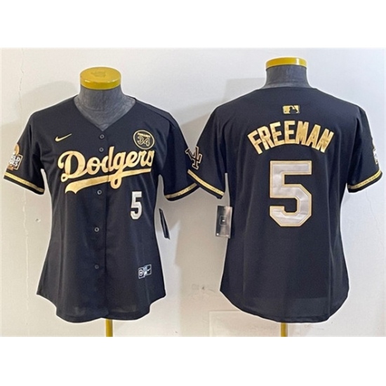 Women's Los Angeles Dodgers #5 Freddie Freeman Black Gold 2024 World Series With Fernando Vapor Limited Stitched Baseball Jersey(Run Small)
