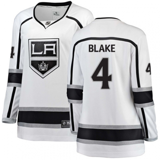 Women's Los Angeles Kings #4 Rob Blake Authentic White Away Fanatics Branded Breakaway NHL Jersey