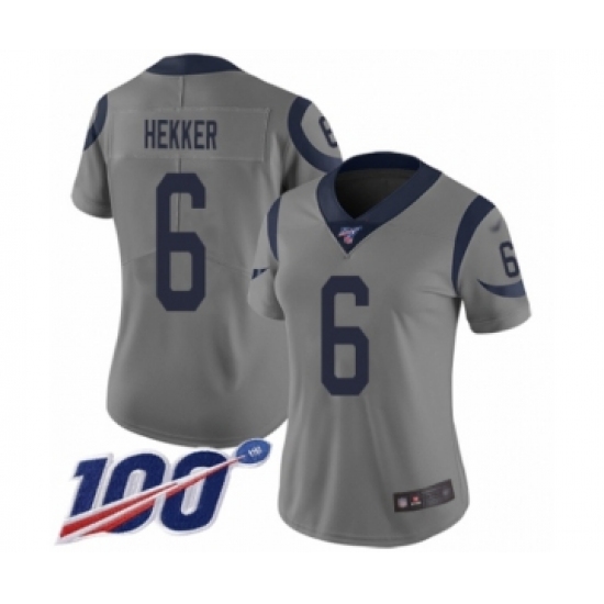 >Women's Los Angeles Rams #6 Johnny Hekker Limited Gray Inverted Legend 100th Season Football Jersey