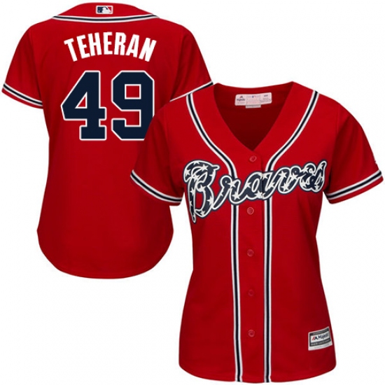 Home>MLB>Atlanta Braves>Julio Teheran>Women's Majestic Atlanta Braves #49 Julio Teheran Authentic Red Alternate Cool Base MLB Jersey