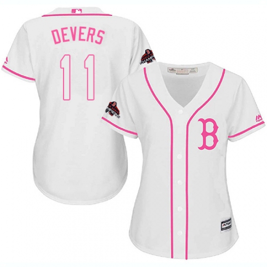 Women's Majestic Boston Red Sox #11 Rafael Devers Authentic White Fashion 2018 World Series Champions MLB Jersey