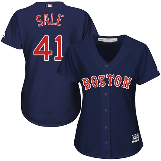 Women's Majestic Boston Red Sox #41 Chris Sale Authentic Navy Blue Alternate Road MLB Jersey
