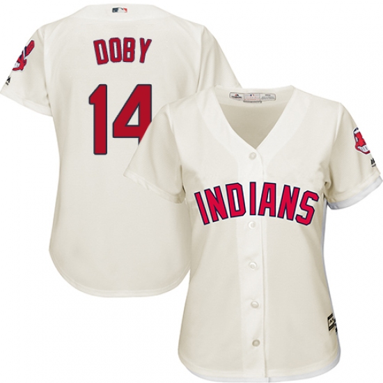 Home>MLB>Cleveland Indians>Larry Doby>Women's Majestic Cleveland Indians #14 Larry Doby Authentic Cream Alternate 2 Cool Base MLB Jersey