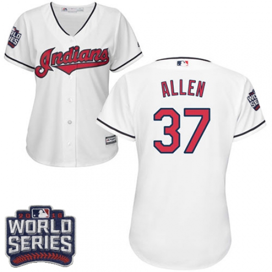 Women's Majestic Cleveland Indians #37 Cody Allen Authentic White Home 2016 World Series Bound Cool Base MLB Jersey