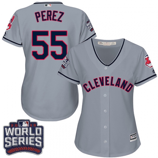 Women's Majestic Cleveland Indians #55 Roberto Perez Authentic Grey Road 2016 World Series Bound Cool Base MLB Jersey