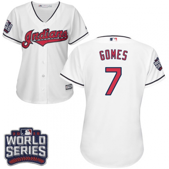 Women's Majestic Cleveland Indians #7 Yan Gomes Authentic White Home 2016 World Series Bound Cool Base MLB Jersey