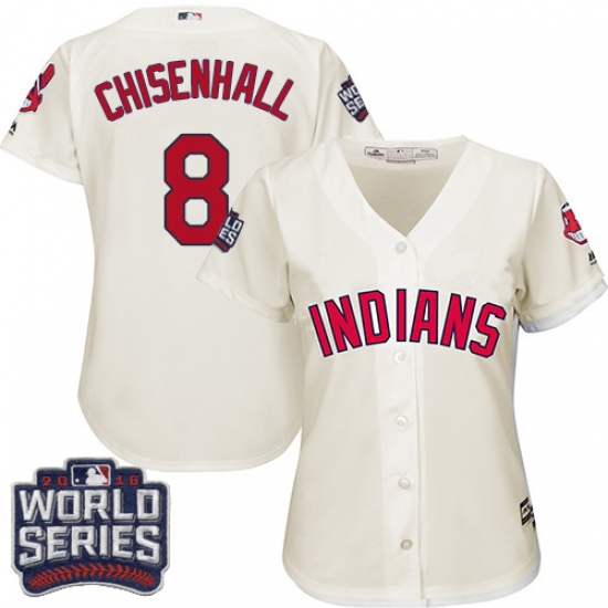 Home>MLB>Cleveland Indians>Lonnie Chisenhall>Women's Majestic Cleveland Indians #8 Lonnie Chisenhall Authentic Cream Alternate 2 2016 World Series Bound Cool Base MLB Jersey