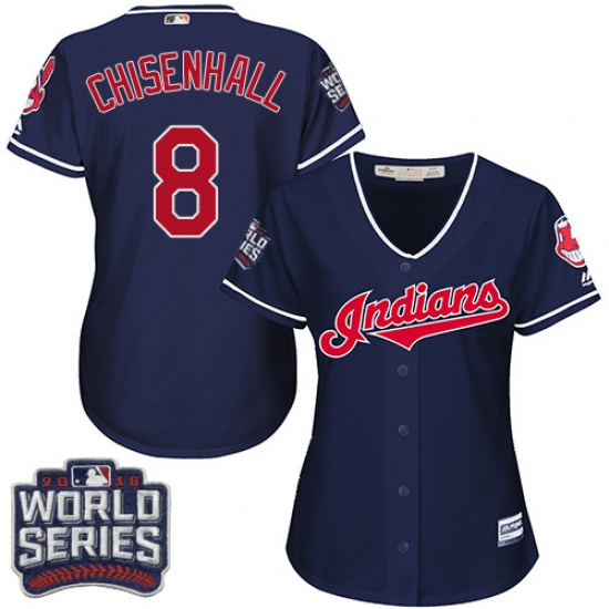 Home>MLB>Cleveland Indians>Lonnie Chisenhall>Women's Majestic Cleveland Indians #8 Lonnie Chisenhall Authentic Navy Blue Alternate 1 2016 World Series Bound Cool Base MLB Jersey