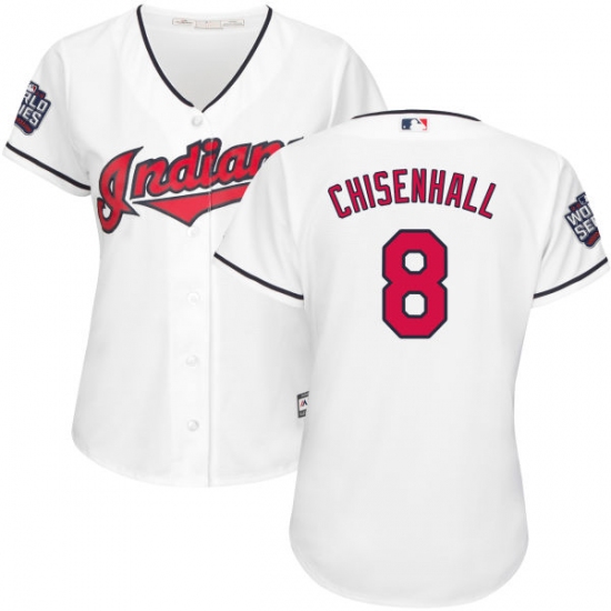 Home>MLB>Cleveland Indians>Lonnie Chisenhall>Women's Majestic Cleveland Indians #8 Lonnie Chisenhall Authentic White Home 2016 World Series Bound Cool Base MLB Jersey